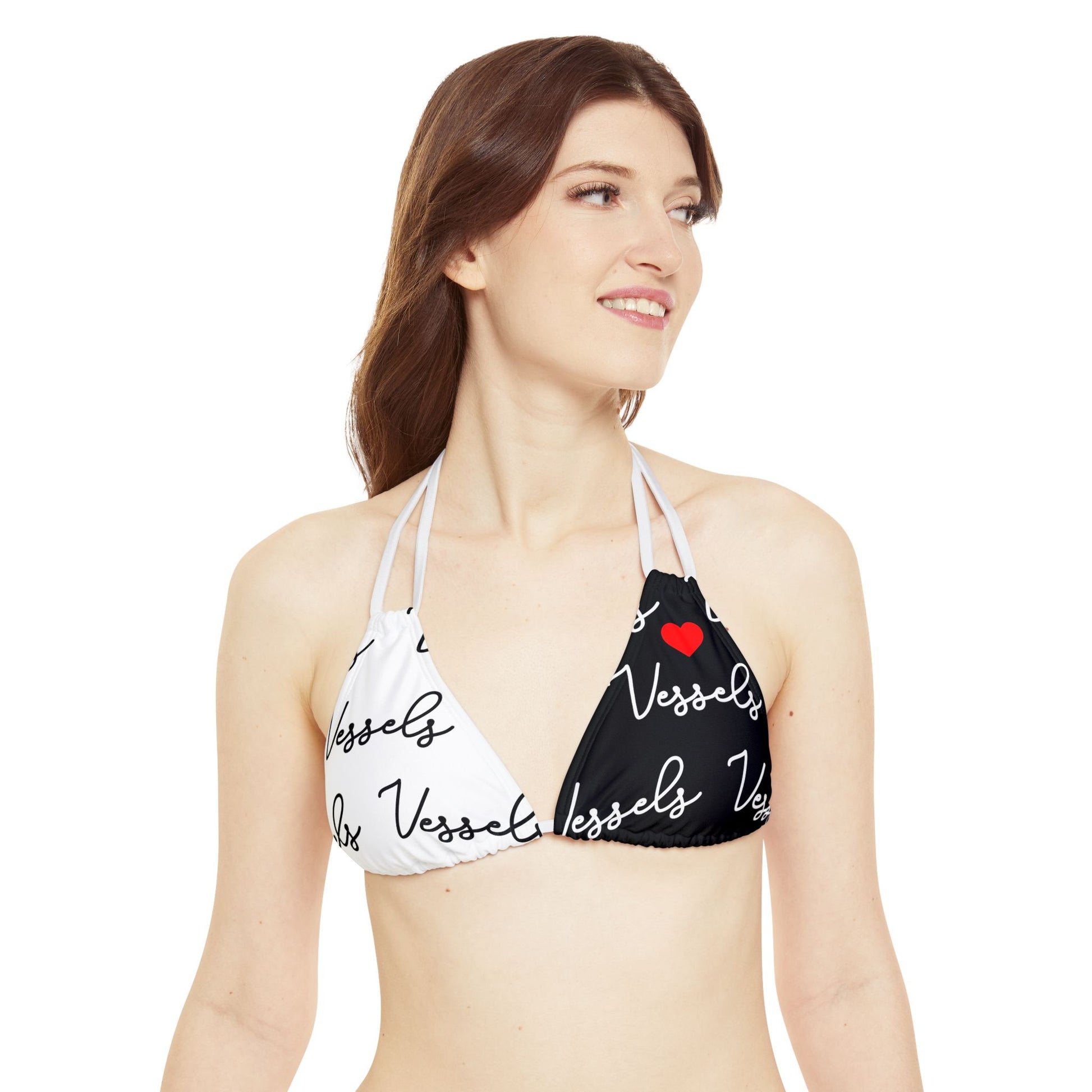 Black and White Strappy Bikini Set - Summer Swimwear, Beachwear, Vacation Essential, Pool Party Outfit, Cute Love Design