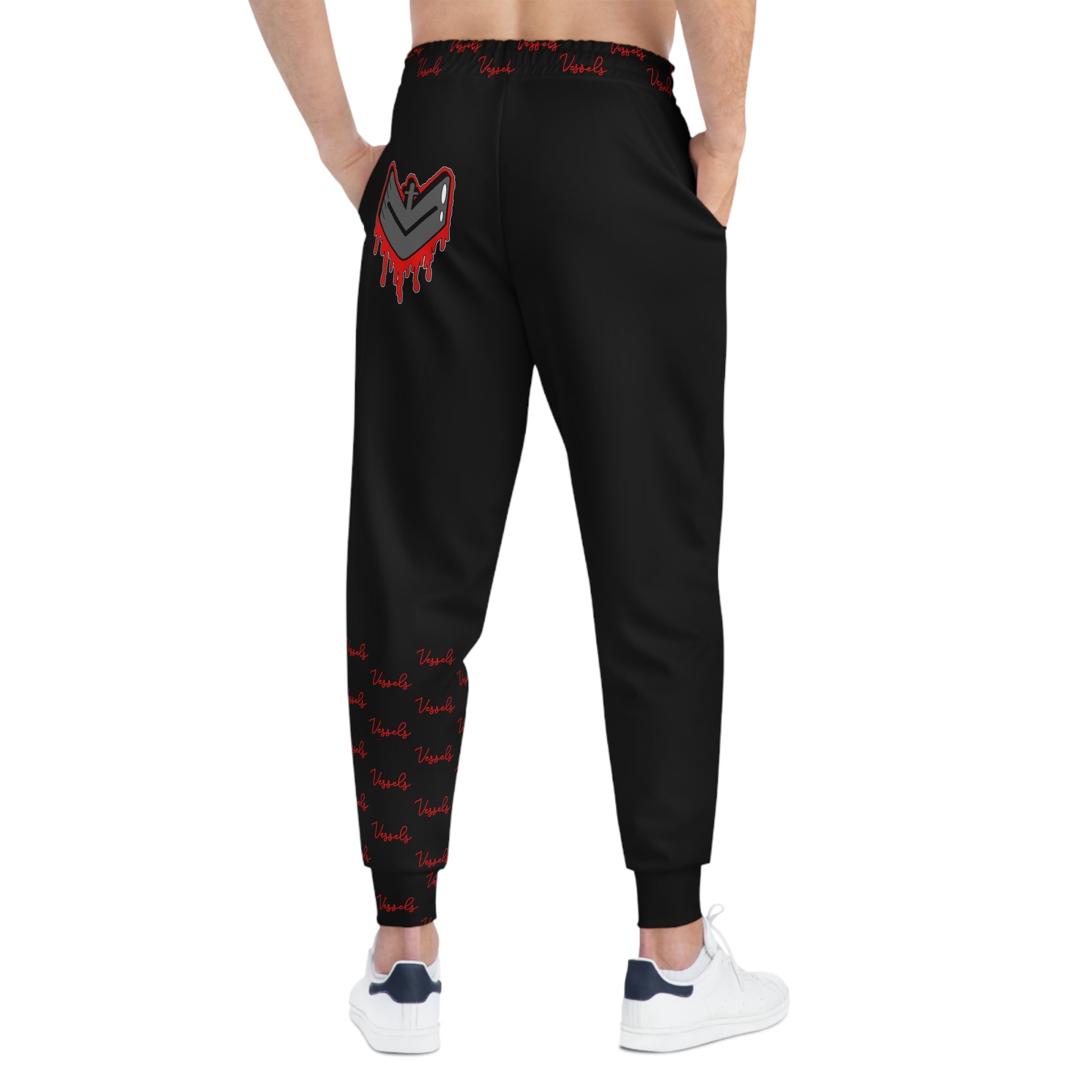 Red Drippy Athletic Joggers for Streetwear Enthusiasts